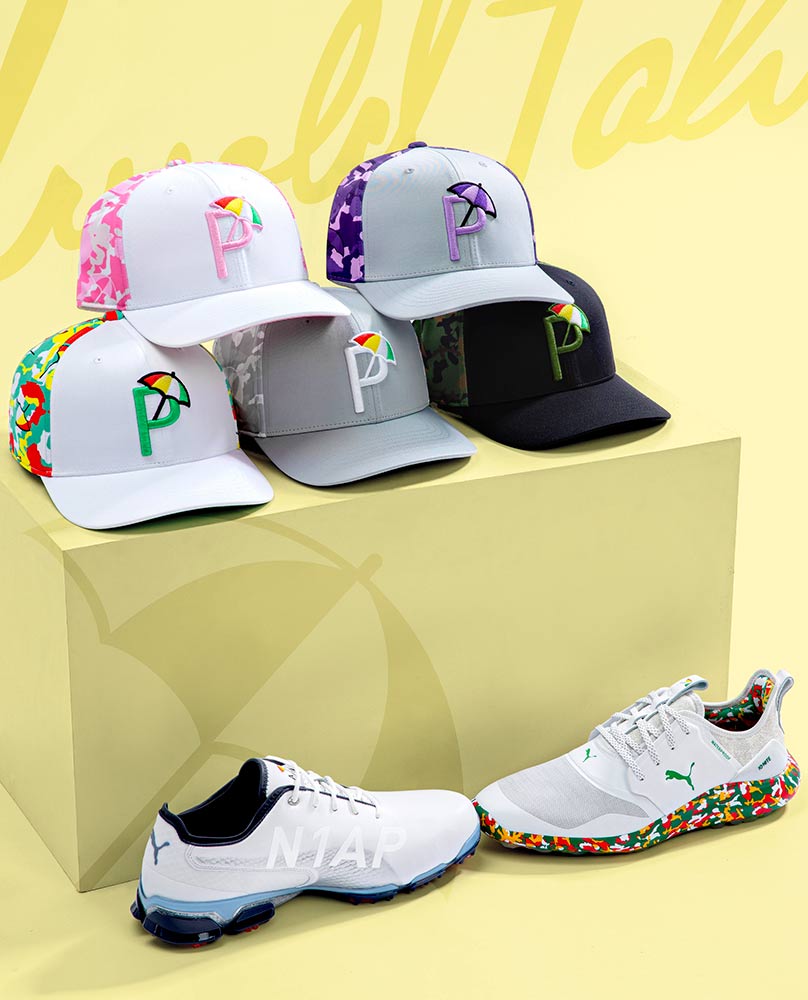 The new collection features two dashing pairs of Ignite shoes, an assortment of caps including the API Camo Snapback and an API Puma/Vessel stand bag. The new collection is available online through Puma, selected retailers and in Puma’s tent by the 18th hole at Bay Hill this week.